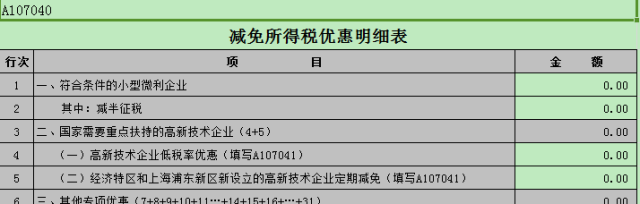 (2)符合小型微利企业优惠条件的,还需按规定填报A107040《减免所得税优惠明细表》第1行“符合条件的小型微利企业”。