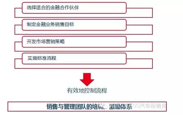 我们最后就来讲一下,如何提升融资租赁或者汽车金融业务的能力。如果大家要涉足融资租赁业务或者汽车金融业务,最关键的一点就是选择适合自己的金融业务合作伙伴。金融业务合作伙伴刚刚提到了有商业银行,有独立的融资租赁的公司等等。然后,制定自己的金融销售业务目标、融资租赁业务目标。还有一个开发市场营销策略。在德国,融资租赁客户被称为车队客户,是企业客户,个人客户也有,但是比较少,车队占得比较大。德国大型企业的员工都要开车,也有自己的车队,企业的中层和高层管理人员都是用融资租赁的车,这是非常普遍的,这也更多的是企业给员工的福利。此外,我们怎么样有效地把融资租赁业务做好?最为关键的还是要有销售团队和管理团队的培训、激励体系(见图5)。
