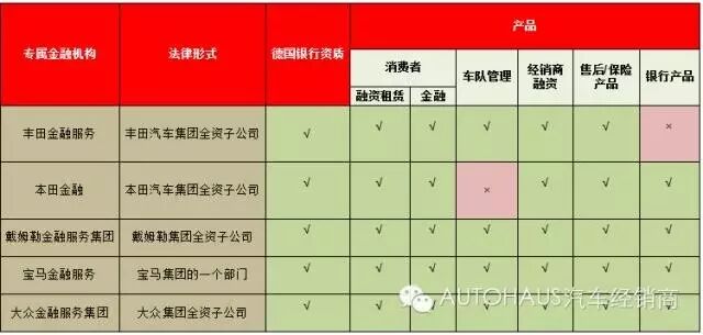 由于历史的原因,主机厂专属金融机构在市场上占据主要份额,还有一个原因就是它的产品和服务范围,产品细分化,服务的形式也是最多样化的,这也是它能够在市场上是最主要参与者的原因。