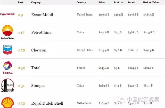 来源:中国能源观察福布斯最新发布全球2000强上市公司2016年全新排名。全球石油公司集体栽面儿。其中,埃克森美孚稳坐全球最大上市石油公司交椅,