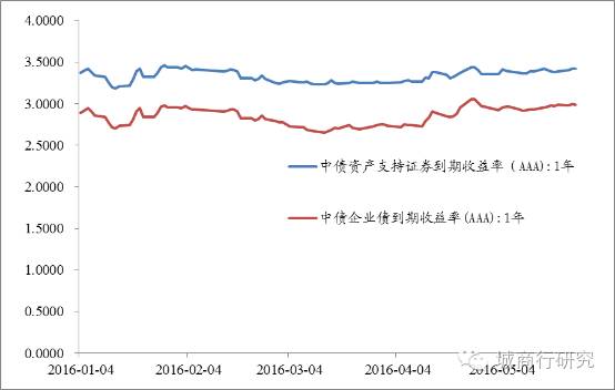 图7: 2016年以来1年期3A评级资产支持证券和企业债到期收益率