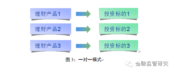 在理财业务发展初期,理财产品资金运作和投资标的相对简单,多数是一个理财产品对应一个资产投向,理财产品募集的资金与标的的资产投向一一对应,能够较好地实现理财资金期限与标的资产期限的匹配;理财信息披露也相对透明,成本收益核算简单(见图3)。但该模式对银行人财物的配合有较高要求,产品设计不够灵活,投资标的主要集中在债券、货币市场基金、央行票据等固定收益类工具,难以满足投资者多样化的理财需求和理财规模的快速增加。随着理财业务创新不断,该模式逐步被其他理财模式所代替。