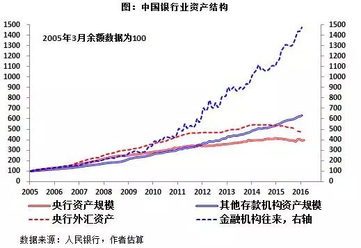 但本次危机以来,中国银行业却有别于其他国家,依然采取了逆周期的扩张,截至2016年一季度末,中国银行资产总规模由2007年底的53万亿扩张至203万亿,8年间扩张了接近4倍。