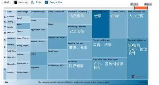 2015年至2016年第一季度,互联网仍是涌现最多、且最大金额退出(收购并购或IPO)的领域。