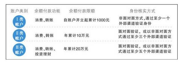 后来,2015年12月28日正式发布《非银行支付机构网络支付业务管理办法》,自2016年7月1日起施行。以后的网络支付账户分为三个类别: