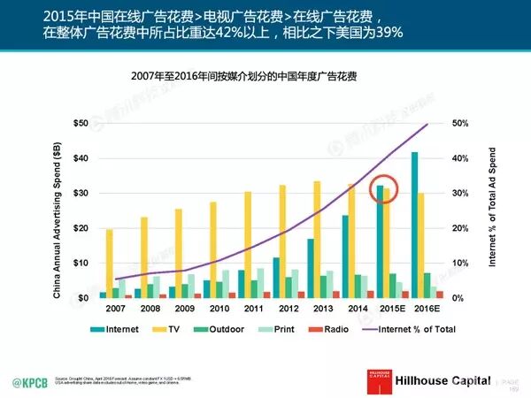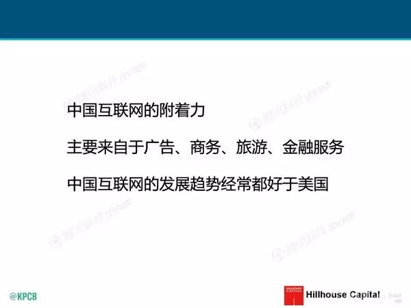 中国互联网的附着力主要来自广告、商务、旅游、金融服务,中国互联网的发展趋势经常都好于美国。