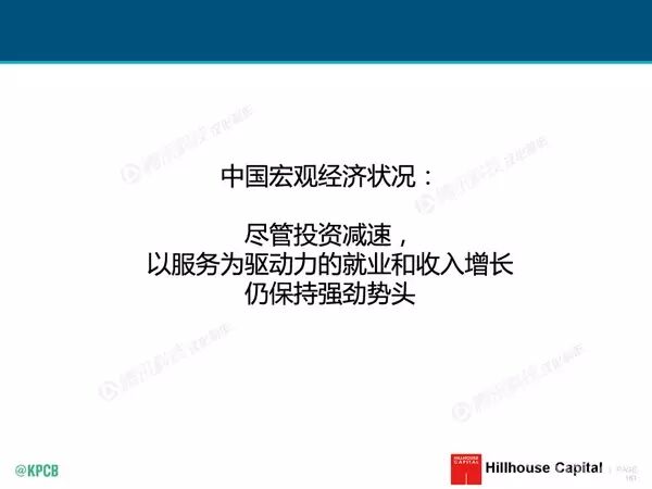 6月2日,有“互联网女皇”之称的Mary Meeker(玛丽·米克尔)今天在美国Code大会上发布了2016年的互联网趋势报告。其中,Mary Meeker引用了高瓴资本的内容,专门开辟一个章节阐述:中国已经成为互联网领袖。以下为相关PPT内容: