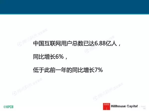 2015年中国互联网用户总数已达6.88亿人,同比增长6%,而2014年为7%的增长率。中国的网民人口红利已经消失,将近7亿的网民人数世界遥遥领先。