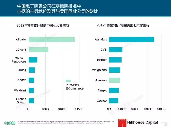 中国电子商务公司在零售商排名中占据主导地位,而美国那边传统出身的零售商地位更为稳固。