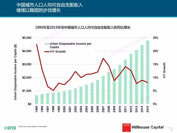 尽管增速有所下滑,但中国城市人口人均可自由支配收入继续以稳固的步伐增长。
