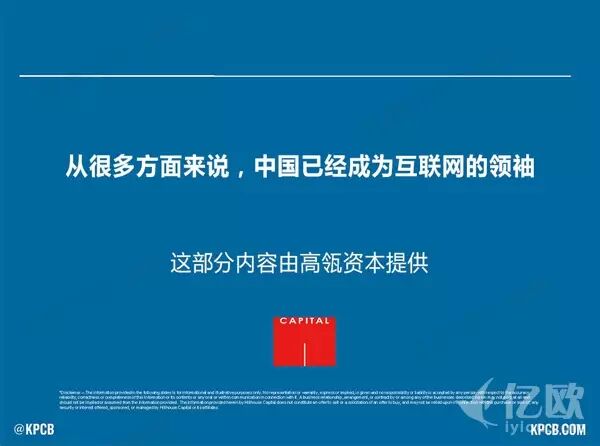 [ 导读 ] 有“互联网女皇”之称的Mary Meeker(玛丽·米克尔)今天在美国Code大会上发布了2016年的互联网趋势报告。其中,Mary Meeker引用了高瓴资本的内容,专门开辟一个章节阐述:中国已经成为互联网领袖。