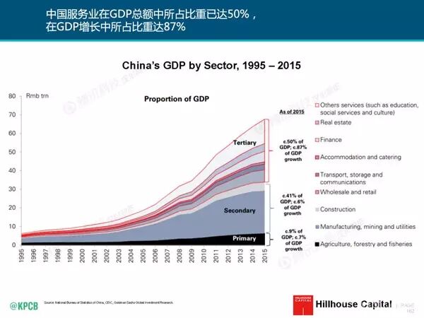 2015年时,中国服务业在GDP总额中所占比重已经达到50%,在GDP增长中所在比重达87%。这预示着,中国的经济结构健康程度在继续向好。