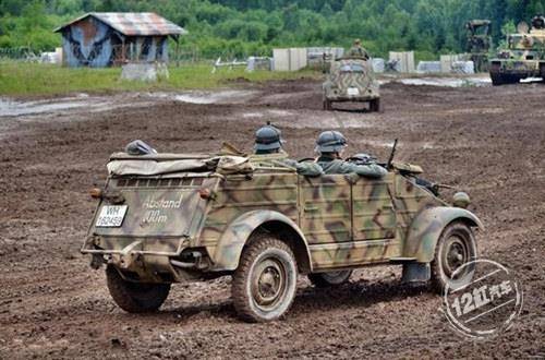 二战中德军著名的vw 82“桶车”(kubelwagen),作为希特勒关注的项目,该车由费迪南德·保时捷(保时捷创始人)博士设计,82型桶车底盘下部较平,全重只有685千克,只要1个人就能够从前方抬起来。