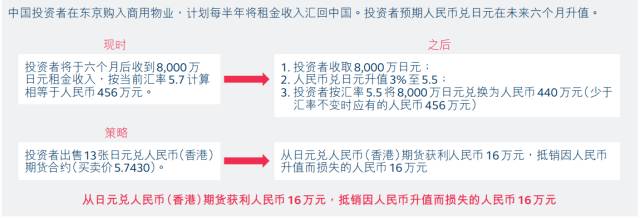 日本与中国贸易额庞大,中国投资者可使用日元兑人民币(香港)期货,抵销若人民币升值而产生的汇兑损失。