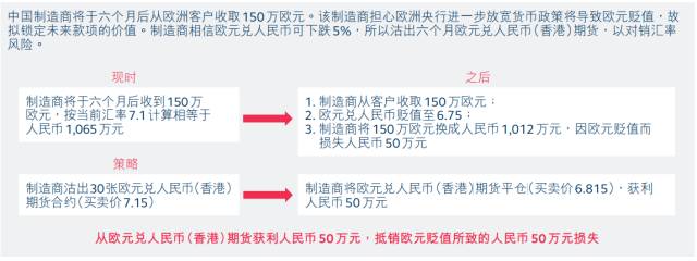 欧盟与中国为主要贸易伙伴,中国制造商使用欧元兑人民币(香港)期货,抵销若欧元贬值导致的应收帐款汇兑损失。