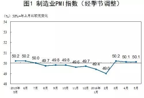 3、国家统计局:5月中国制造业PMI为50.1%,与上月持平,连续三个月位于扩张区间。