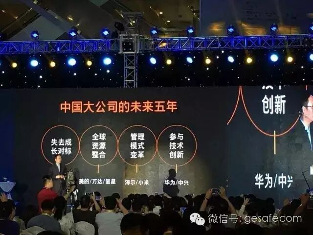中国大公司未来五年,有这几个特点,第一,失去成长对标。我去年去海尔、美的、苏宁调研,企业家老板都跟我讲一句话,到2016年以后,对中国大公司来讲,竞争时代已经结束了。所有大公司已经失去对标,挑战是什么?我们要联合资源。当我领导全世界的时候,我就在想,我有没有创新一种全世界没有的管理模式,有没有创新一种全世界没有的商品模式,有没有可能?不是没有可能,要变成必须。