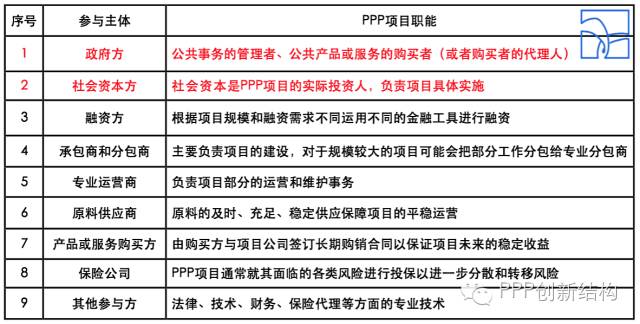 来源:PPP创新结构一、PPP项目参与主体分析PPP项目公司是PPP模式运行的重要载体,通常由项目发起方和投资方以设立项目公司(SPV)的形式实施。在PPP项目