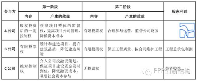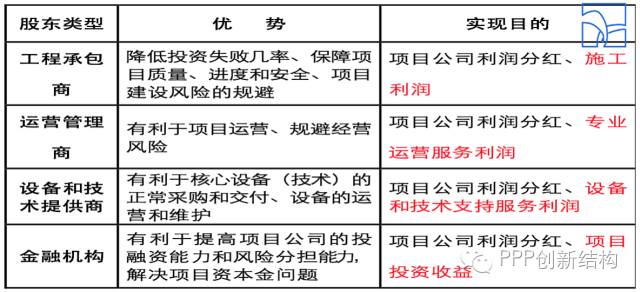 充分发挥不同类型的PPP项目公司股东优势,实现各股东的目的是PPP项目中政府和社会资本合作成功的关键。
