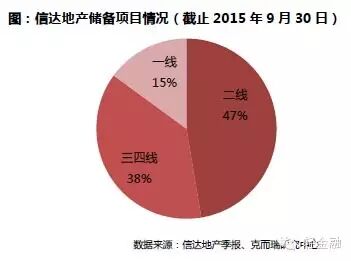 接连拿下上海、深圳和杭州的地块前,信达地产的布局实际以二三线城市为主。截至2015年三季度,信达地产储备项目总量506.93万平方米,其中一线城市仅占15%,主要为上海和广州,在广州的为信达地产从中国信达“接盘”的不良资产重组开发项目;二线城市尽管占比最高达47%,但是其中不乏宁波、长春、沈阳、海口、乌鲁木齐等市场和经济相对较弱的城市;三四线城市占38%。