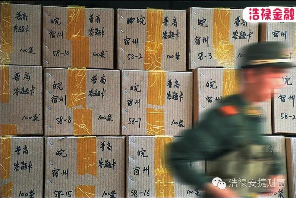 2004年】众所周知,每年的高考试卷押运都是在考前几天,经过周密安排、严格保密,由武警专门负责的。2004年,试卷押运的起点是皖南山区某地,目的地是合肥,全程400公里,并有近200公里的山路。启运是在凌晨,武警一人一车,荷枪实弹,高度警惕。为了防止意外,所有工作人员押运途中不休息不用餐,并每隔3小时向省教育厅和国家教育部报告一次押运情况。图为63日,近35万份试卷在武警护送下安全抵达合肥。