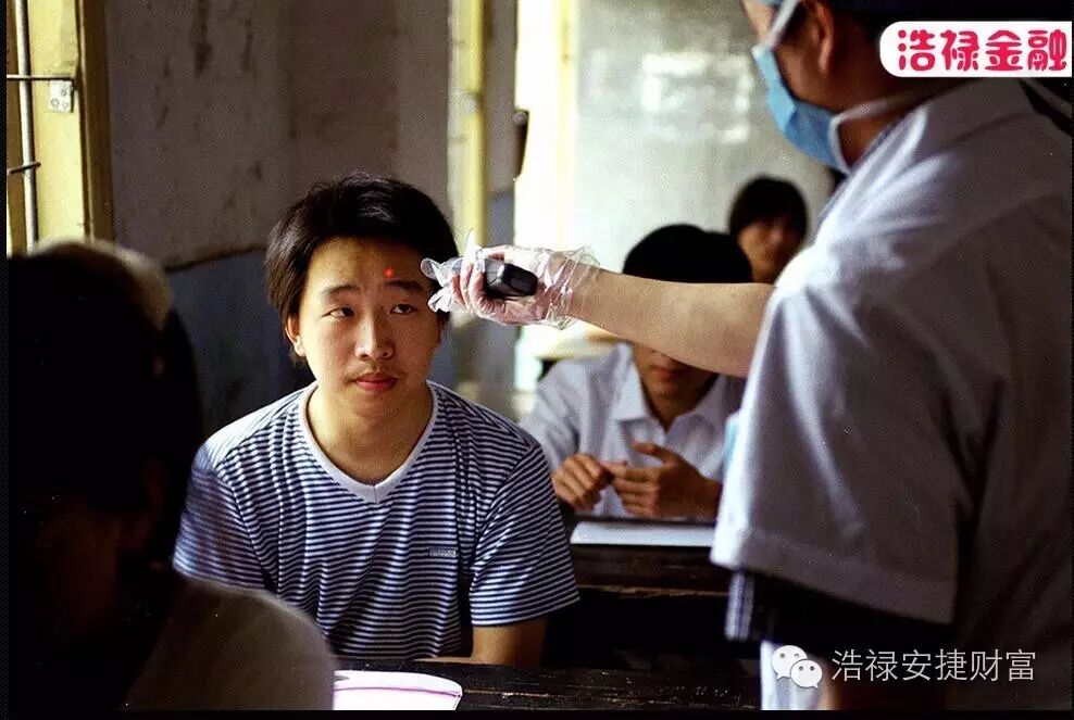 【2003年】高考时间第一次从往年的7月份提前到6月,而那年又恰好赶上了全民抗击“非典”的特殊时期,全国多地采取了封校措施。为确保考生及相关工作人员的健康和安全,从524日开始,安徽的考生就开始每天自测体温。像画面中这样,高考前一天,用红外体测仪为每位考生测量体温,恐怕也是绝无仅有的场景了。