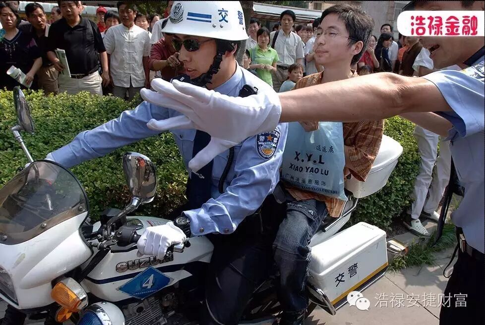 【2007年】在短短的两三天时间内,除了考生和家长,社会各界都在为高考保驾护航。图为67日,合肥六安路,距离考试只有几分钟,一名考生跑错考点,交警用警车载着考生去自己的考点。这样的情况几乎每年都能遇到。