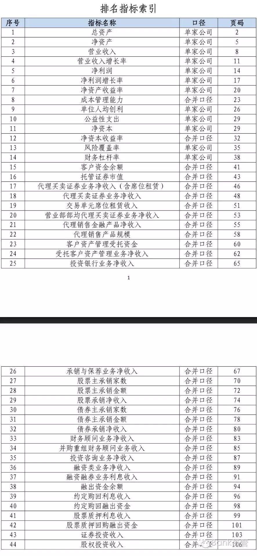 近期,证券业协会对2015年度125家证券公司会员经审计经营数据及业务情况进行了统计排名。指标分为企业规模与经营绩效、风险管理与负债能力、客户基础与市场影响力三大类,共计44项指标。