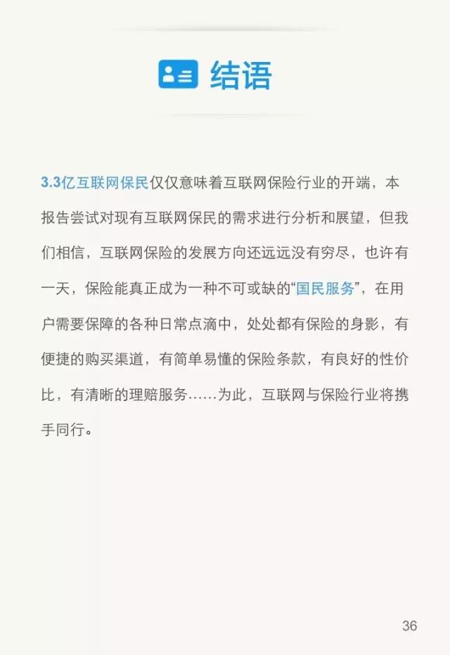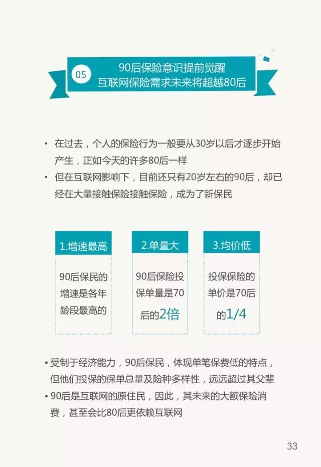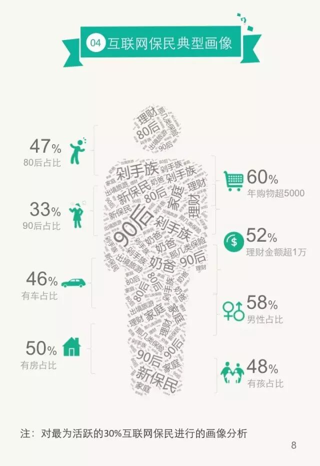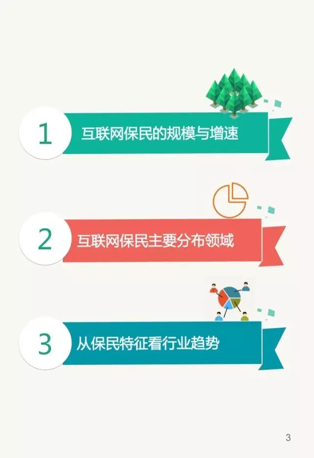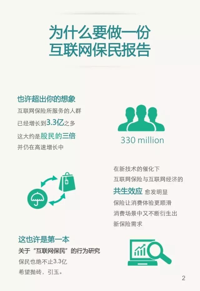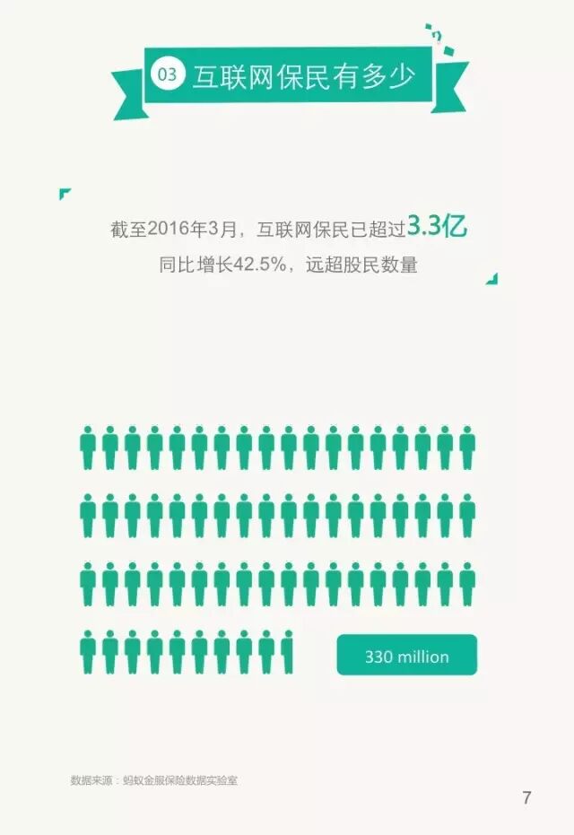 截止到2016年3月,互联网保险服务的用户已经超过3.3亿,同比增长42.5%,互联网保民人数已经是股民人数的3倍,基民的1.5倍。在互联网保民当中,8090占80%,当奶爸后投保意愿翻倍,东三省最爱退货运费险,保民越熬夜越买健康险,扶老人险保民捐款比例是普通人21倍。以下是报告详细内容: