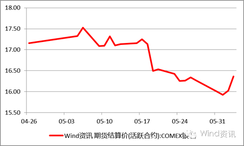 5月,现货白银下滑10.33%,突破16关口。