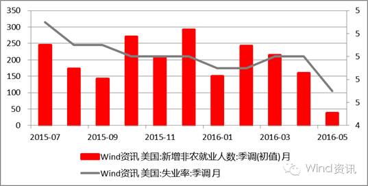 美国新增非农就业人数VS.失业率