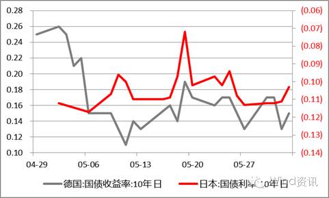 05-02,受美联储鹰派言论影响引发卖盘,德国10年期公债收益率上涨突破0.30%至6周高位。