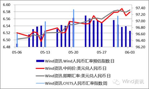 05-31,人民币中间价报6.5790,官方16:30收盘价报6.5846。整个5月,人民币中间价下滑1.86%,人民币即期下滑1.53%。CFETS人民币指数报97.15,整个5月该指数下滑0.07%。