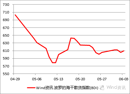 05-31,波罗的海干散货指数收报612,比上月下滑12.94%。