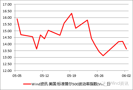 05-31,VIX指数收报14.19,比上月下滑9.62%。