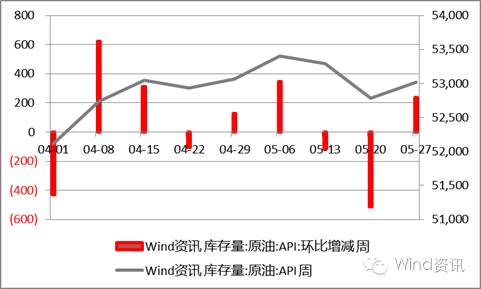 API原油库存量及周环比增减
