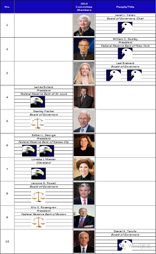 美联储2016具有投票权阵营 (鸽/中立/鹰)