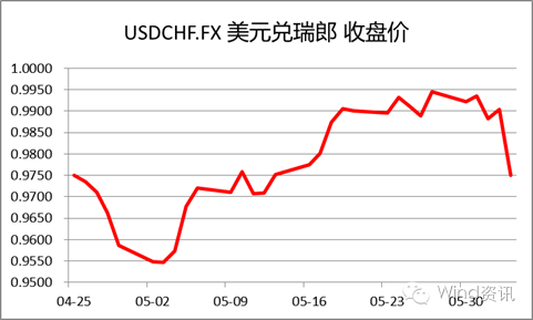 05-18~24,美联储会议记录暗示可能在6月升息,美元兑瑞郎一路攀升;24日,触及11周高位0.9940。