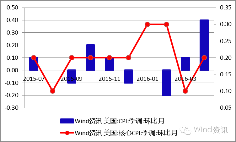 05-17,美国4月消费者物价升幅为3年来最大环比升0.4%,市场预期0.3%;同时,不计食品和能源的4月核心CPI环比上升0.2%,符合市场预期。