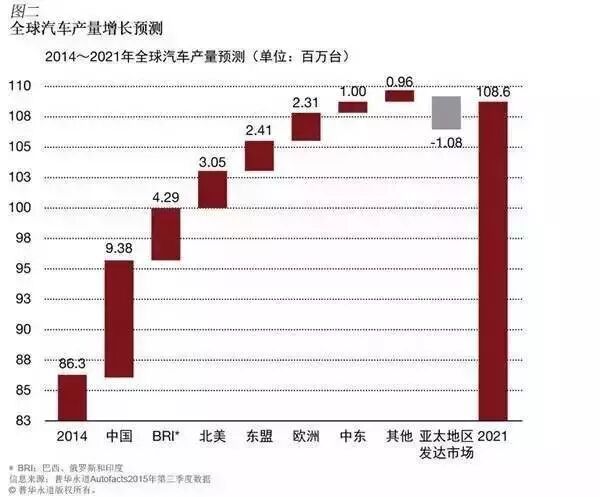 近来汽车供应商行业的巨额并购或使部分收购商望而却步—是否应该向竞争激烈的汽车行业投入巨资,他们依然游移不定。但我们认为,事实上,大型交易的交易价格并非虚高,并且未来增长空间巨大。普华永道汽车行业分析团队Autofacts认为,2014-2021年间汽车行业的年复合增长率预测(4%)甚至可能过于保守,尤其是新兴国家在此期间有可能摆脱经济低潮状况。尽管销量增长进入减速期,中国仍然拥有蓬勃的消费者市场。思略特预测,到2021年,有实力购买汽车的中国家庭数量将从如今的1.5亿增长到3亿以上,达到现在的两倍多。这类增长将为在全球供应商衰减中幸存的企业带来相当可观的业务订单。