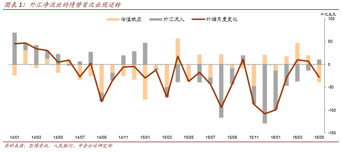 去年11月以来外汇净流出的情势首次出现逆转。剔除估值效应,5月外汇净流入109亿美元,相比4月133亿美元与1季度月均567亿美元的净流出大幅改善。