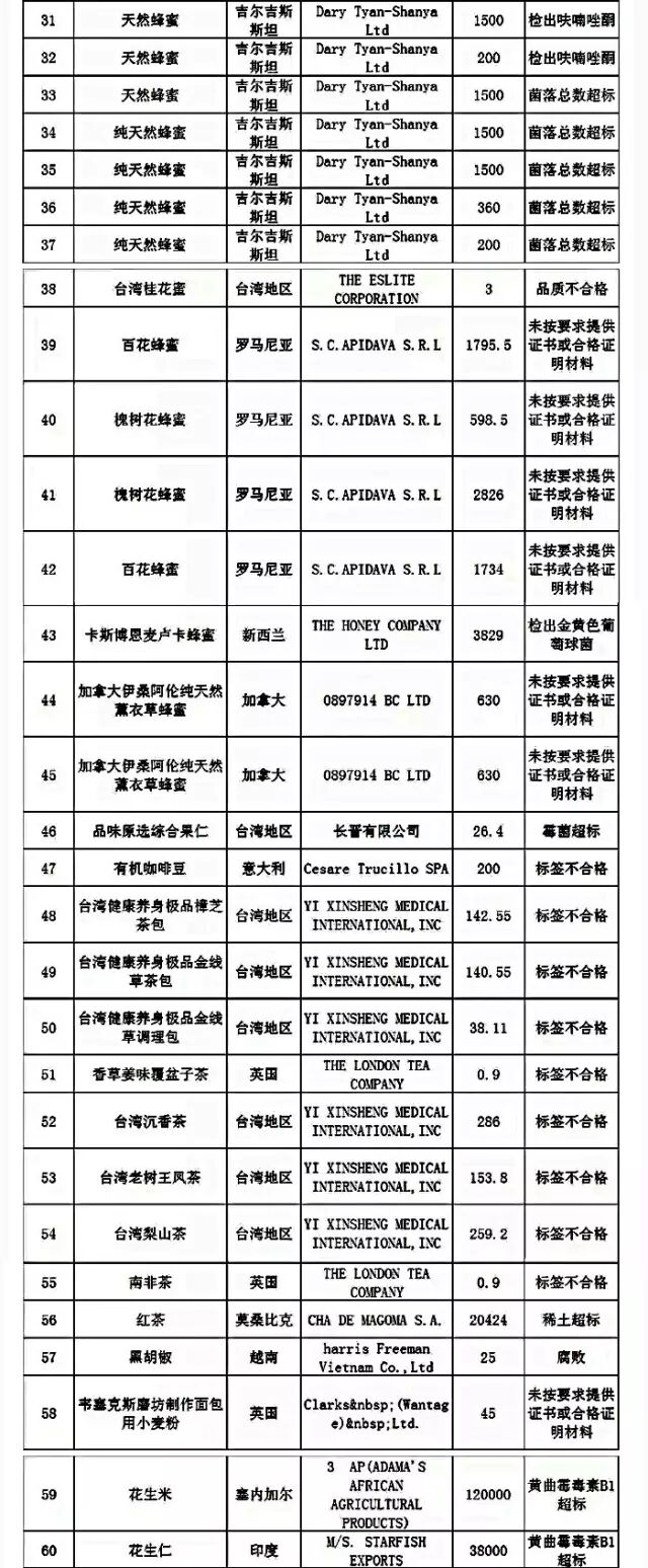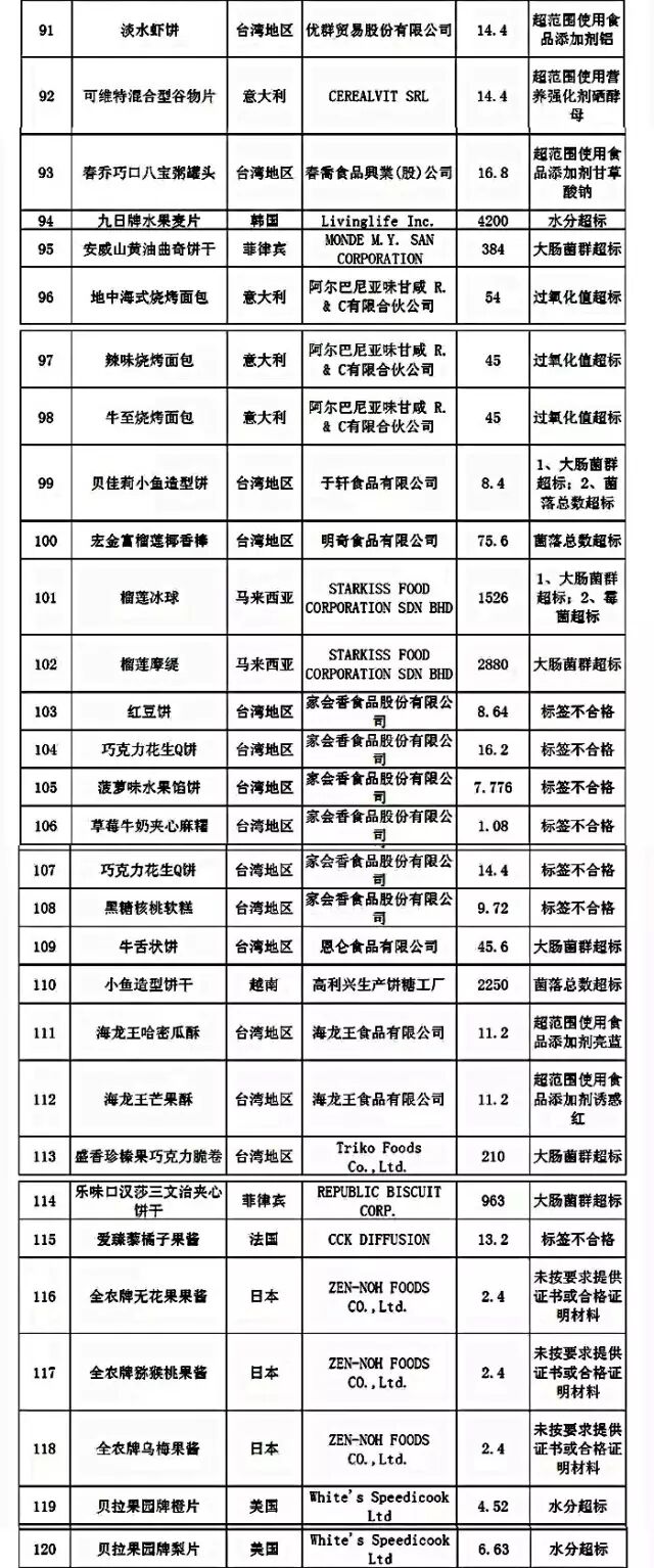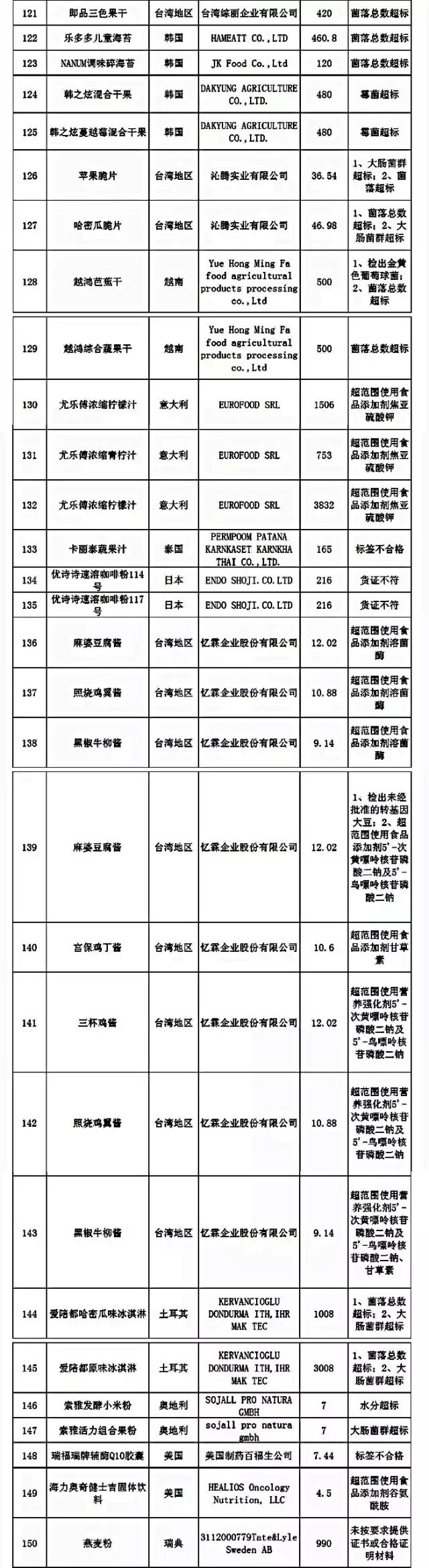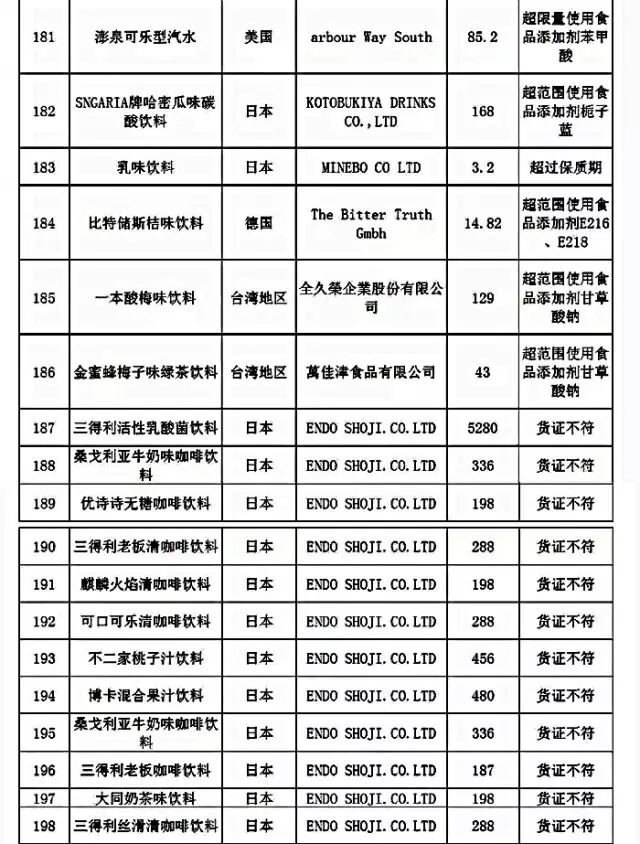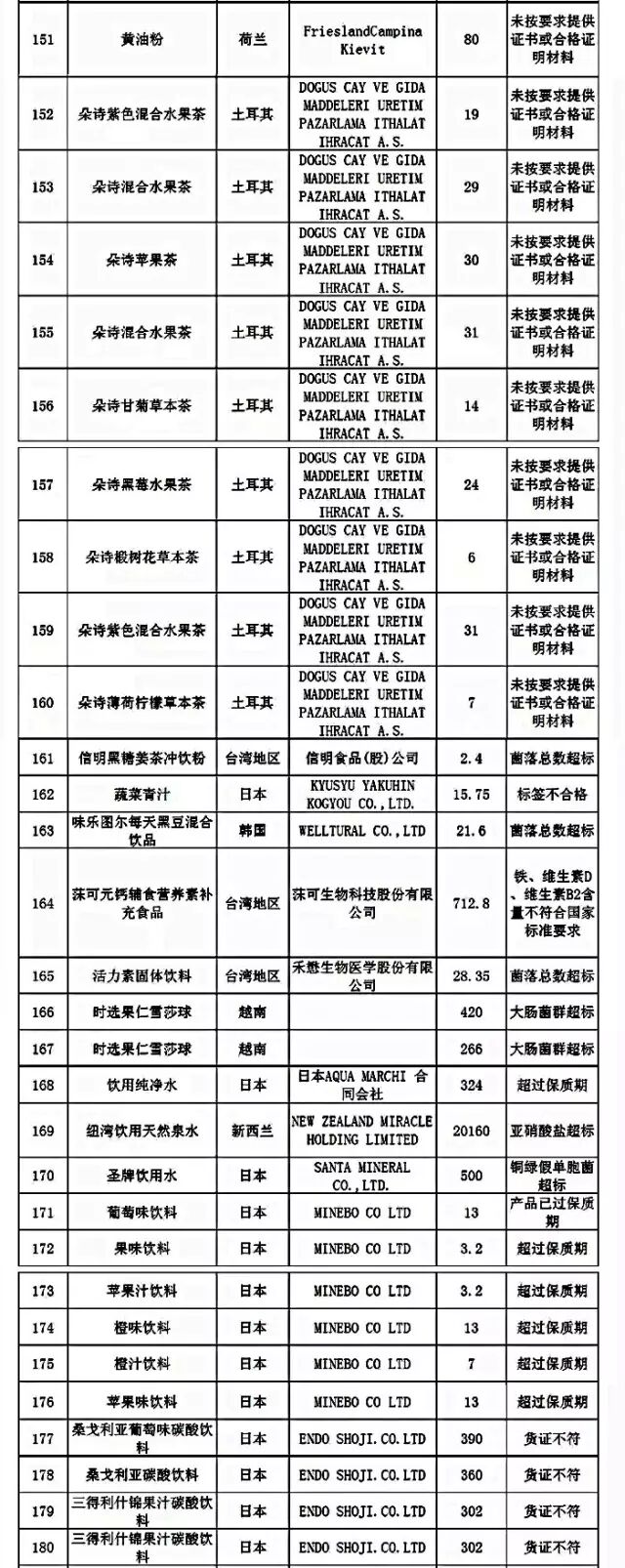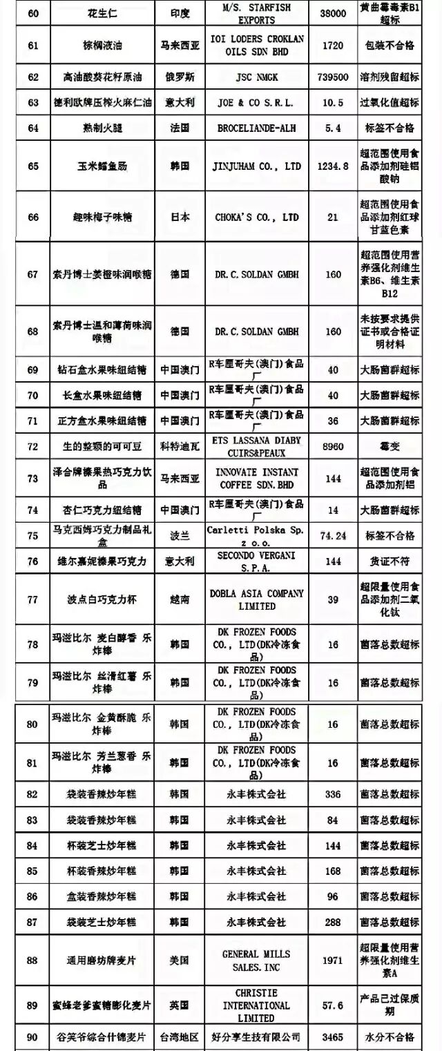 近日,质检总局公布2016年4月进境不合格食品、化妆品信息。共有237种不合格食品和化妆品上“黑榜”。(详细名单见下文) 其中,多批次休闲食品、饮料被检出超范围使用食品添加剂,另有数批次来自韩国炒年糕产品、吉尔吉斯斯坦天然蜂蜜被检出菌落总数超标。 超范围使用食品添加剂成为进口食品不合格的主要原因,休闲食品是重灾区。本次抽检中发现,1批次来自德国的索丹博士姜橙味润喉糖超范围使用营养强化剂维生素B6、维生素B12,1批次来自日本的趣味梅子味糖超范围使用食品添加剂红球甘蓝色素,1批次、1234.8公斤来自韩国的玉米鳕鱼肠超范围使用食品添加剂硅铝酸钠。 还有多款国外饮料被检出超范围使用食品添加剂。包括1批次进口自新西兰的纽湾饮用天然泉水亚硝酸盐超标,涉及产品20.16吨。另外有1批次来自日本的SNGARIA牌哈密瓜味碳酸饮料被检出超范围使用食品添加剂栀子蓝,1批次美国产澎泉可乐型汽水超限量使用食品添加剂苯甲酸。 有5批次来自吉尔吉斯坦的天然蜂蜜被检出菌落总数超标,涉及产品超5000公斤。来自韩国的4批次玛滋比尔乐炸棒、6批次炒年糕制品同样被检出菌落总数超标,分别在山东、安徽做销毁、退运处理。 部分儿童食品也被检出菌落总数超标。1批次由越南高利兴生产饼糖工厂生产的小鱼造型饼干菌落总数超标,涉及产品2250公斤;1批次、460.8公斤韩国乐多多儿童海苔也被检出菌落总数超标,在辽宁销毁。 质检总局公告显示,所查获的各批次食品、化妆品的问题是入境口岸检验检疫机构实施检验检疫时发现,都已依法做退货、销毁或改作他用处理。这些不合格批次的食品、化妆品未在国内市场销售。 现在一些家长习惯在网上买进口的儿童玩具,觉得洋品牌比国内品牌的质量更有保障,而国家质检总局此前委托浙江出入境检验检疫局实施的一项对跨境电商进口儿童玩具的监督抽查结果显示,跨境电商销售的进口儿童玩具八成不合格。 浙江出入境检验检疫局检验监管处科长沈玉香:我们检验检疫局对跨境电商的进口玩具抽检了二十个批次,那么经检测发现呢,有16个批次是不合格的。 也就是说,跨境电商所销售的玩具,80%的产品连我国玩具的基本标准要求都达不到。 检测人员介绍,跨境电商所销售的进口玩具问题很多,其中对儿童安全威胁较大的的是儿童滑板车类产品的安全性等问题。在实验室,检验人员模拟儿童站立的状态对这个样品进行了撞击测试。 检验结果显示,这次抽检的两批次样品中,有一批次样品在撞击后产品碎裂,也就是说,如果在使用时撞击到台阶等物体,可能会对儿童造成伤害。 浙江出入境检验检疫局检验监管处科长沈玉香 :一般来说,消费者好像觉得进口玩具产品是比较有保障的,但是从目前的检测情况来看,没法达到就是可能跟着消费者心理的这种预期还是有一定差距的,不是所有的进口产品都是合格的产品。