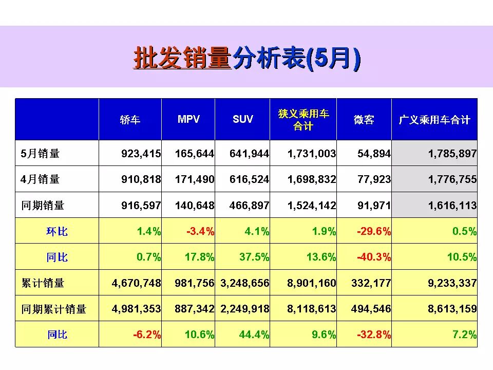 5月的走稳是市场的正常表现,形成东部偏弱,华南和中西部较好的局面。目前经济增长靠房地产和基建投资支撑较明显,随着房地产涨价从沪深向二线城市发散,购买力受到一定挤压,尤其是首付的压力超强,也是挤压现金购买力的,对车市也是潜在的不利。
