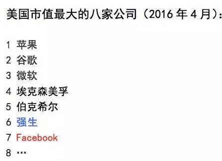2016年的4月到5月间,春天萌发,这个排名再次出现细微的变化:强生让位给Facebook。