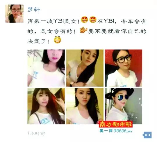 “加入我的团队,一个月保守利润是120%.”“梦轩”表示,她在微信朋友圈中每天都会发布多条宣传帖,有所谓战略合作签约视频,也有身穿印有“YBI”等字样服装,到乡村小学送米面油的宣传照,还有年轻女性照片,“在YBI,香车会有的,美女会有的,要不要就看你自己决定了”。