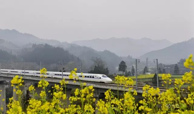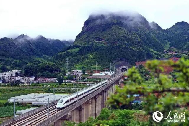 ▲2015年1月,一列贵(州)广(州)高铁动车经过贵州省榕江县境内。