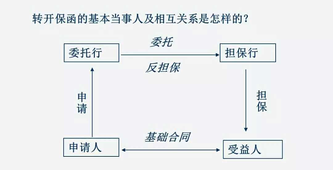 依照保函的开立方式的不同,保函可以分为直开保函与转开保函。直开保函是指银行应申请人的要求,直接向受益人开具保函;转开保函是指当地银行(“转开行”)应原开证行(“委托行”)的要求向受益人开具保函,在转开保函发生赔付时,受益人可以凭转开行开立的保函向其索偿,转开行赔付受益人之后,凭借反担保向反担保行/委托行索偿。