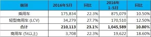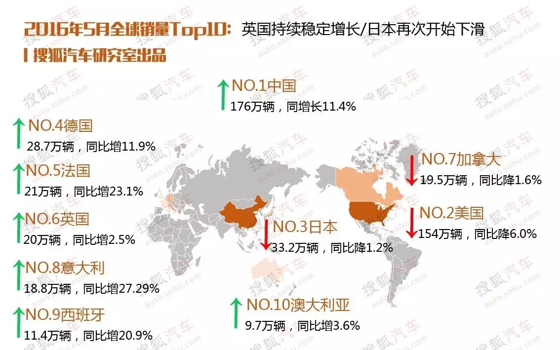 来源:搜狐汽车NO.1 中国中国5月新车销量176万辆 同比增长11.4%6月8日,全国乘用车市场信息联席会发布2016年5月乘用车销量情况:5月,全国广义乘用车累