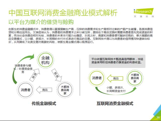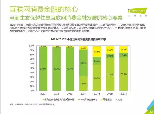 艾瑞咨询预计,在2016年该项业务将成为互联网消费金融中最主要的商业模式。