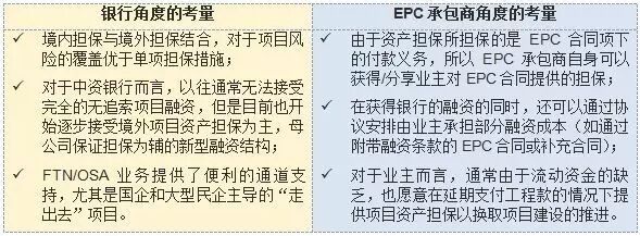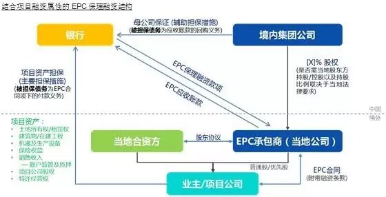 相比之下,鉴于该类保理融资模式项下银行主要是基于EPC承包商的整体资信和背景做出,而非单纯基于当地项目或业主的资信,所以往往会要求EPC承包商承诺就特定情形进行EPC应收账款的回购作为兜底的风险控制措施,因此,境内母公司的保证也就仅针对受其控制的境外主体(即EPC承包商)的回购义务而做出。